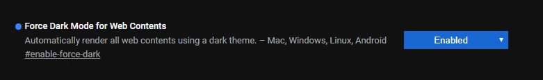 Çıkan Force Dark Mode for Web Contents yanında “Default” yazacaktır. Bu sekmeyi açın ve “Enabled” yapın.