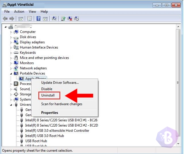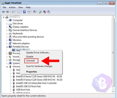 iPhone cihazınız bilgisayara bağladığında, Bilgisayardaki ”Taşınabilir Aygıtlar” altında iTunes’ta görmüyorsanız, cihaz PC tarafından başarıyla tanınmıyor.