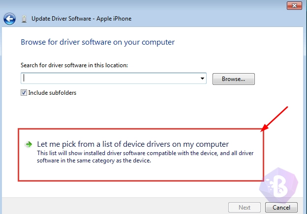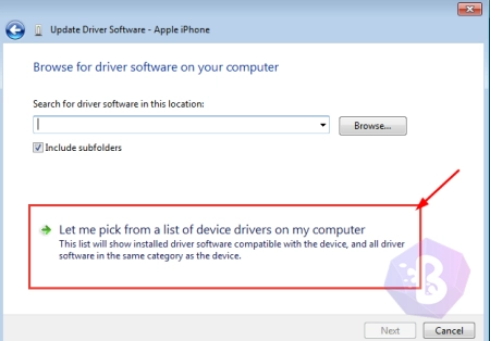 3- Bilgisayarımdaki Aygıt sürücüleri listesinden seçmeme izin ver‘i tıklayın.